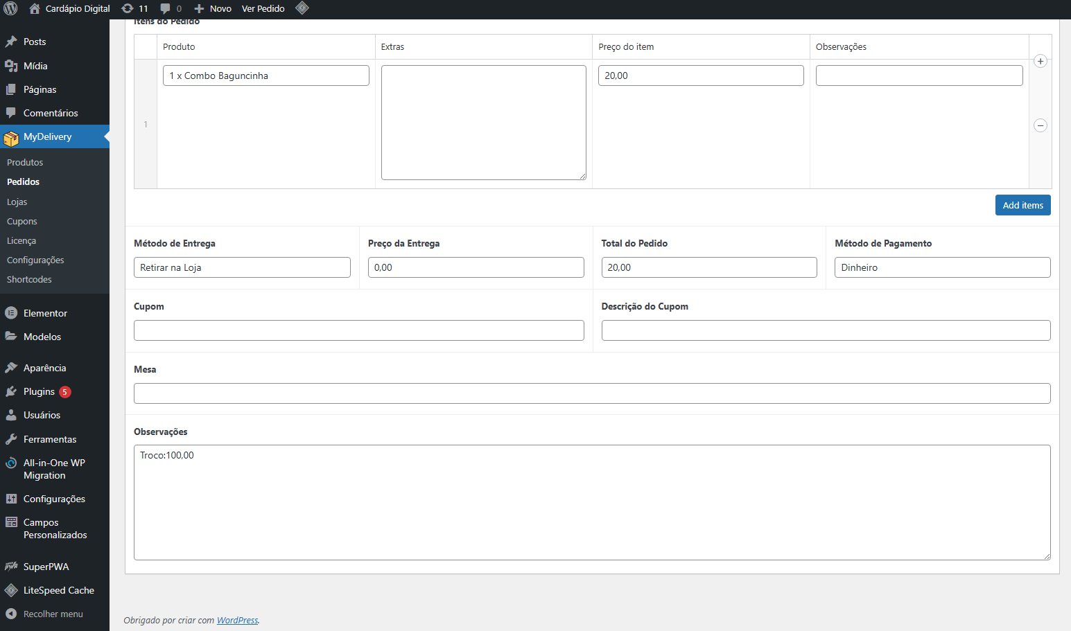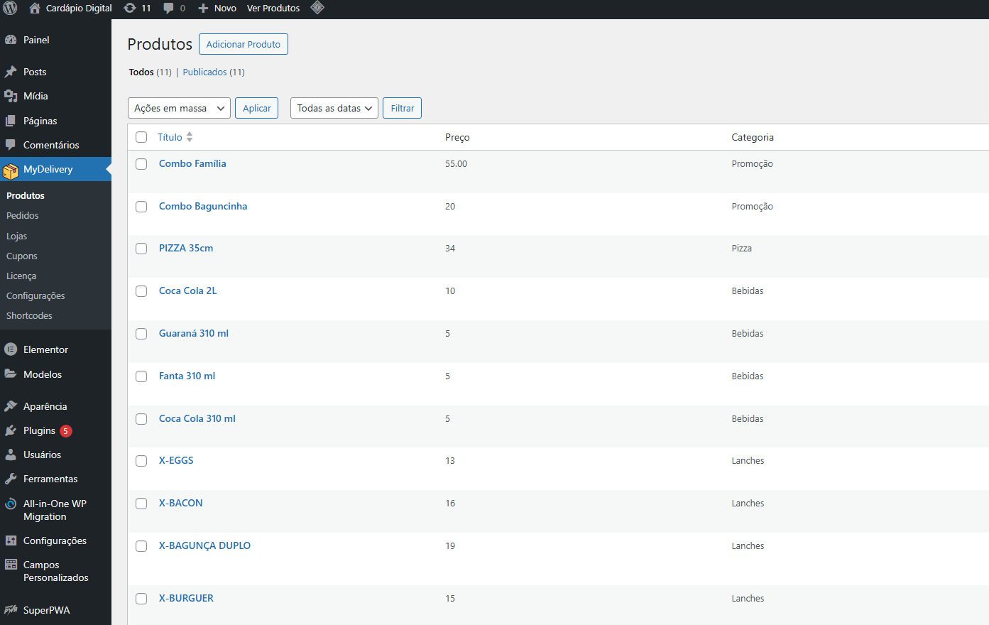 Tags: cardápio, pedidos, lanchonete, restaurante