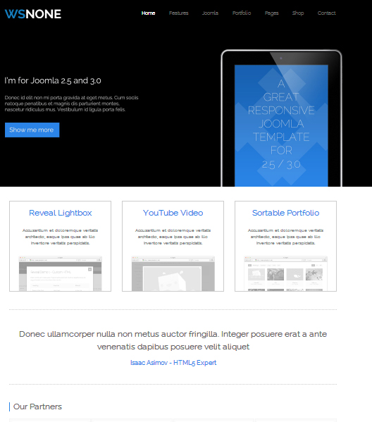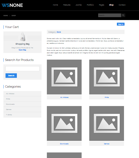 WS-None é um Template Joomla desenvolvido para loja virtual. Totalmente responsive, o design do temas se adapta perfeitamente em diversos dispositivos móveis e navegadores.