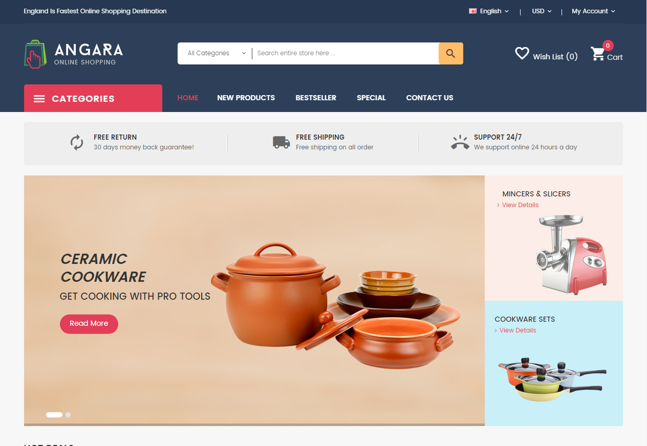 Angara é um template OpenCart desenvolvido para eletrodomésticos. O layout do tema se adapta perfeitamente em diversos dispositivos móveis e navegadores, alguns temas já incluem a versão móvel.