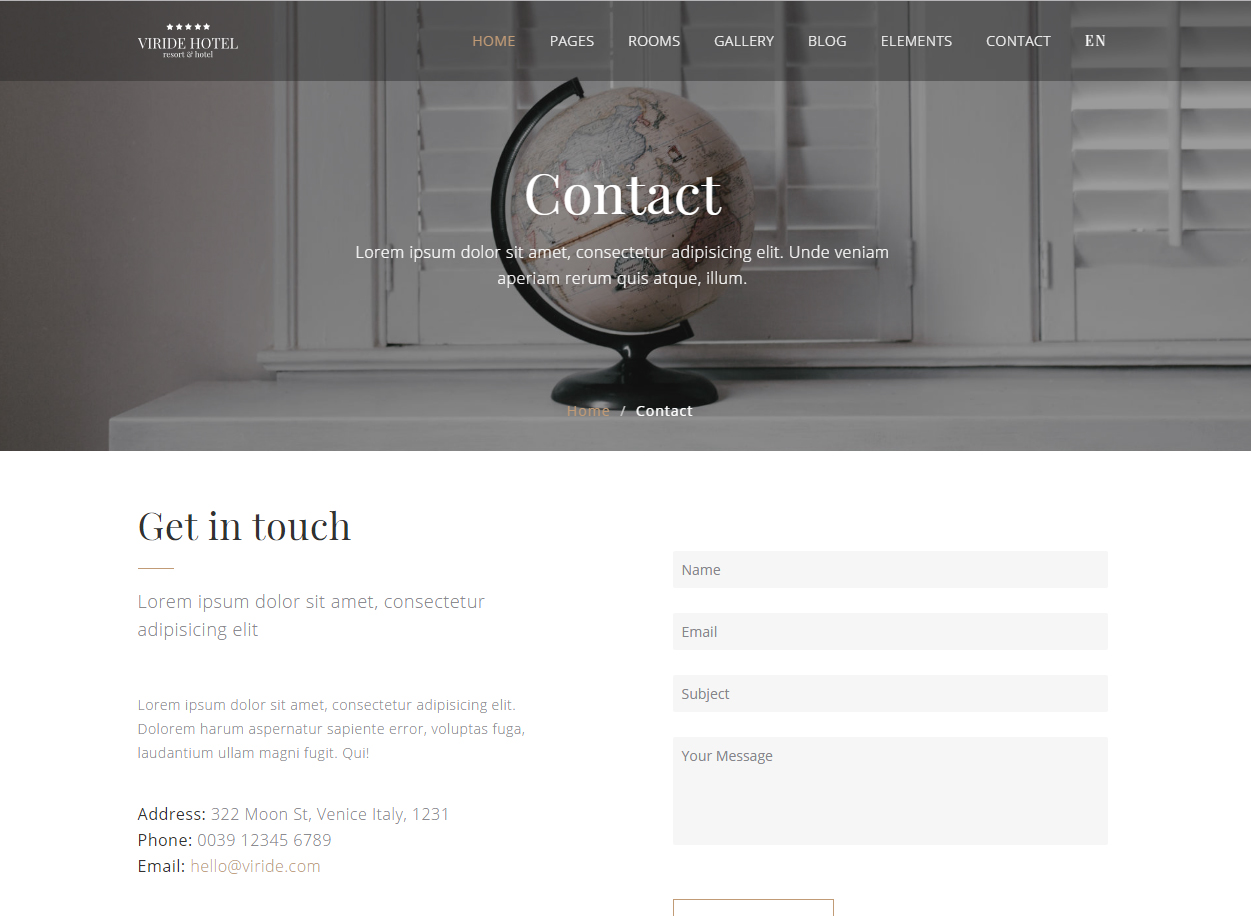 Viride é um template HTML5 & CSS3 desenvolvido para hotéis e resorts Totalmente responsive, o layout do tema se adapta perfeitamente em diversos dispositivos móveis e navegadores.