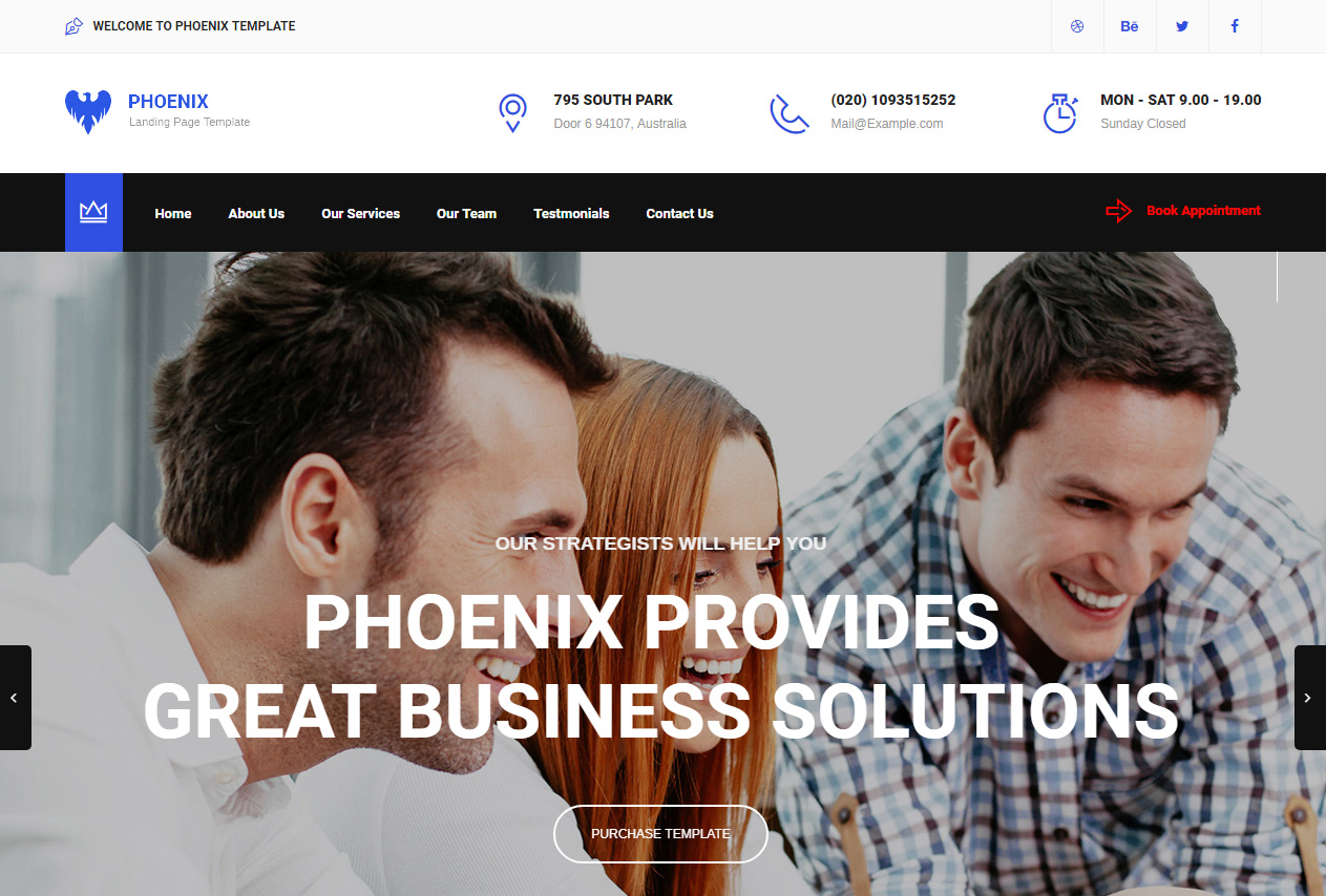 Phoenix é um template HTML5 & CSS3 desenvolvido para serviços e profissionais. Totalmente responsive, o layout do tema se adapta perfeitamente em diversos dispositivos móveis e navegadores.