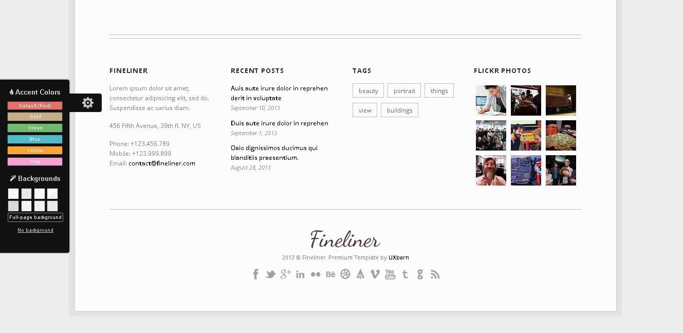 DESCRIÇÃO DO TEMA: Fineliner é um template HTML5 & CSS3 desenvolvido para site pessoal, portfólio, designers. Totalmente responsive, o design do tema se adapta perfeitamente em diversos dispositivos móveis e navegadores.