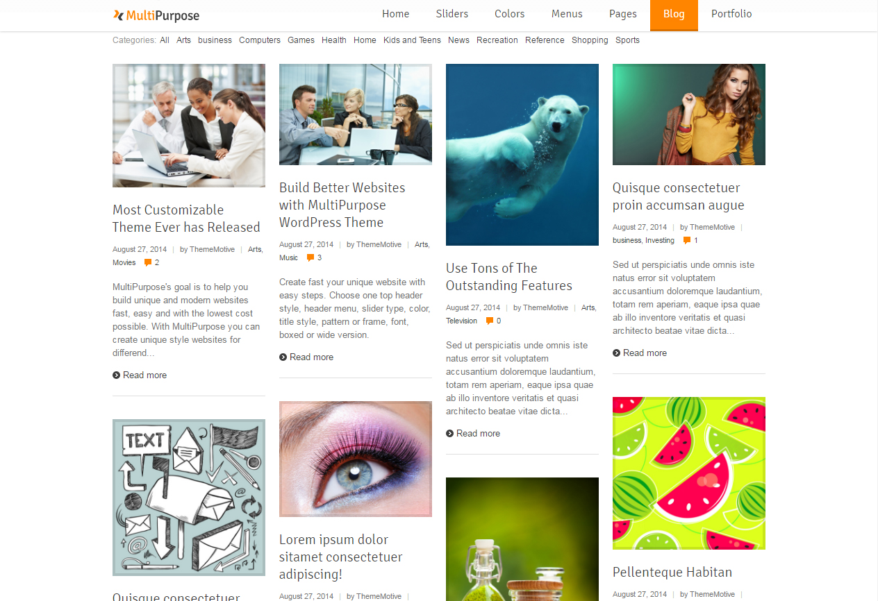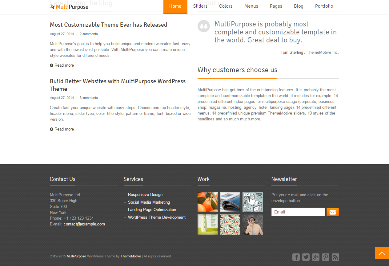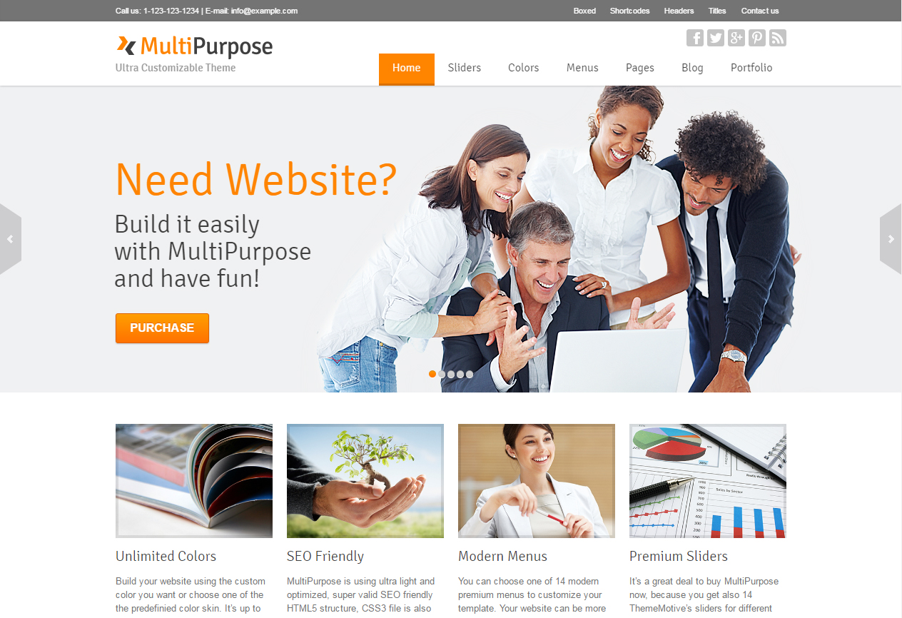 MultiPurpose é um template WordPress desenvolvido para empresarial. O layout do tema se adapta perfeitamente em diversos dispositivos móveis e navegadores, alguns temas já incluem a versão móvel.