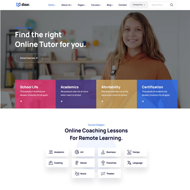 O template Dlear em WordPress desenvolvido para site de Escola de Idiomas. O layout do tema se adapta perfeitamente em diversos dispositivos móveis e navegadores, alguns temas já incluem a versão móvel.