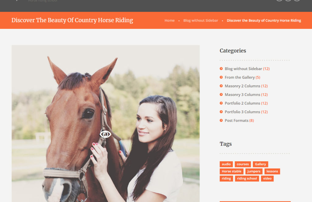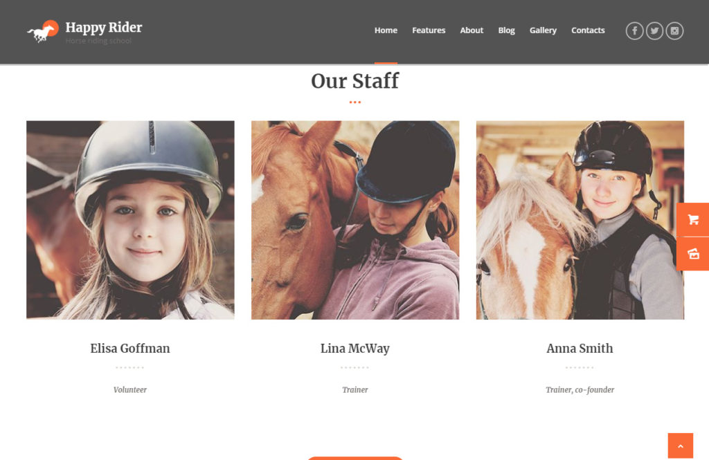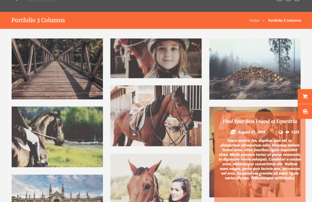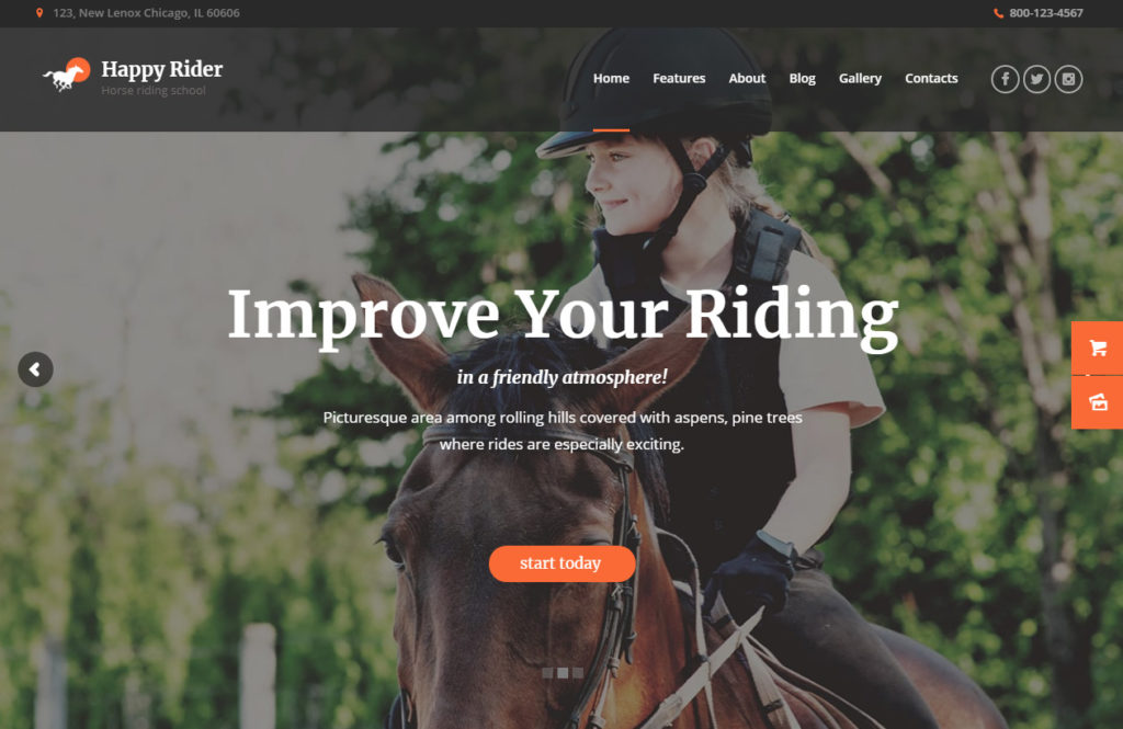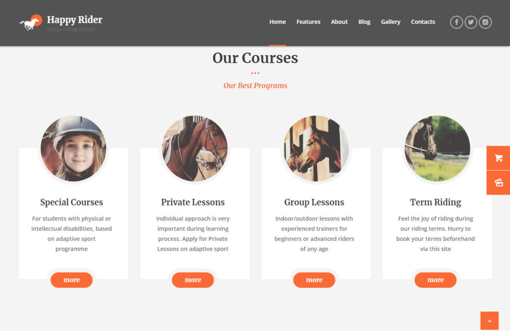 Happy Rider é um template WordPress desenvolvido para escolinhas e haras. O layout do tema se adapta perfeitamente em diversos dispositivos móveis e navegadores, alguns temas já incluem a versão móvel.