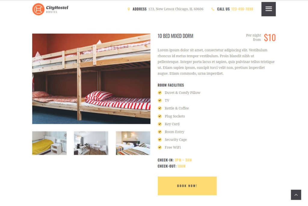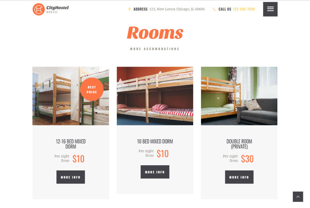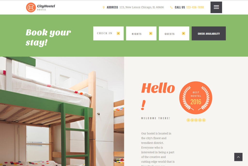 City Hostel é um template WordPress desenvolvido para hotel. O layout do tema se adapta perfeitamente em diversos dispositivos móveis e navegadores, alguns temas já incluem a versão móvel.