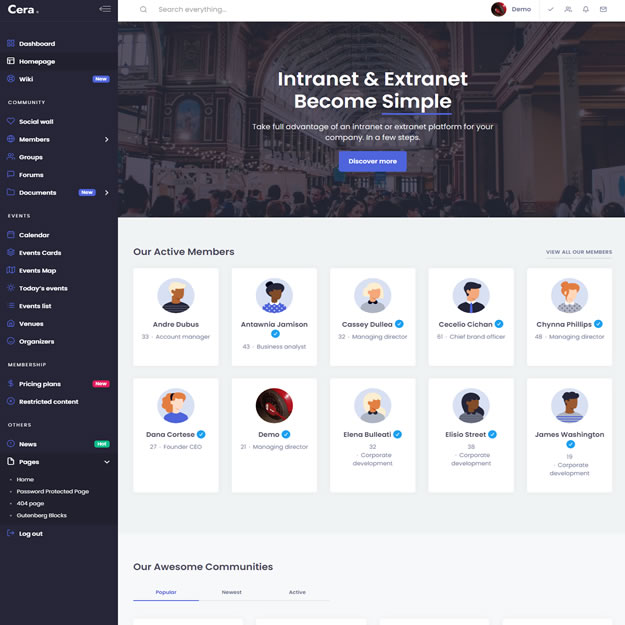 Cera é um template WordPress desenvolvido para intranet e extranet. O layout do tema se adapta perfeitamente em diversos dispositivos móveis e navegadores, alguns temas já incluem a versão móvel.
