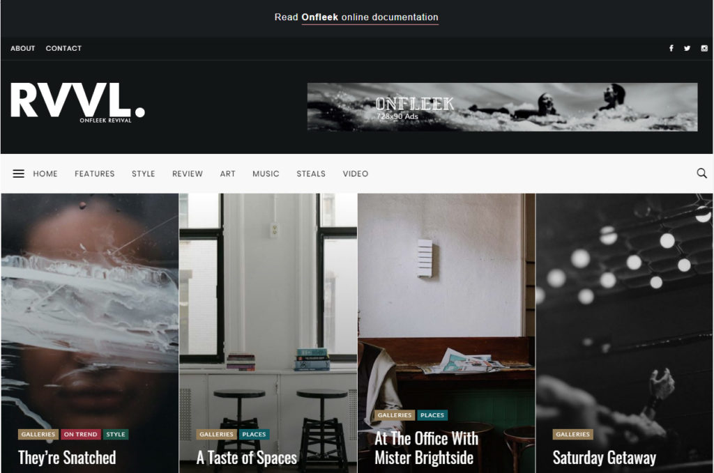 Onfleek é um template WordPress desenvolvido para notícias e magazine. O layout do tema se adapta perfeitamente em diversos dispositivos móveis e navegadores, alguns temas já incluem a versão móvel.