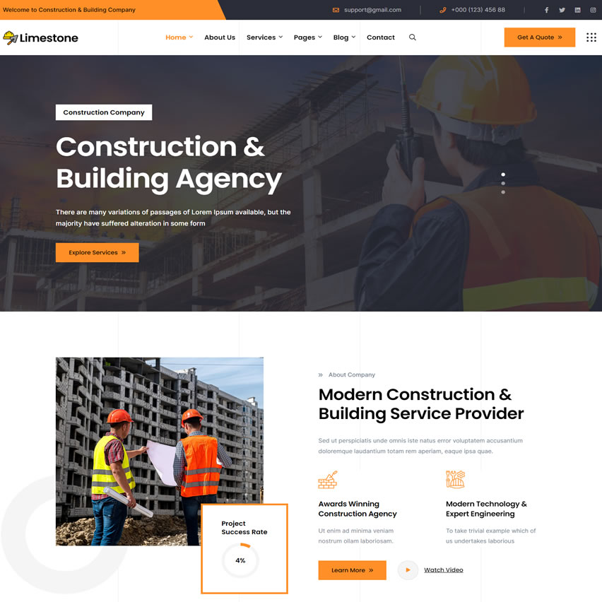 Limestone é um template wordpress desenvolvido para Construtora. O layout do tema se adapta perfeitamente em diversos dispositivos móveis e navegadores, alguns temas já incluem a versão móvel.