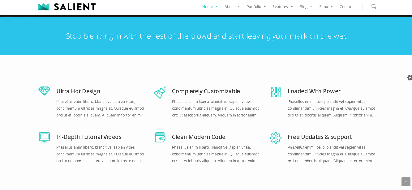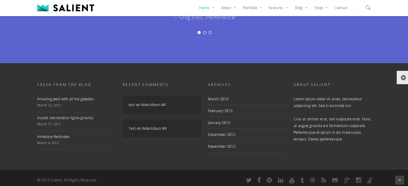 Salient é um belo template ultra moderno WordPress que é perfeito para freelancers, designers gráficos, designers e agências de públicidade e propaganda . Seu design e layout com capacidades impressionantes dará ao seu cliente a impressão mais profissional possível, acredite que este template é perfeito para seu negócio.